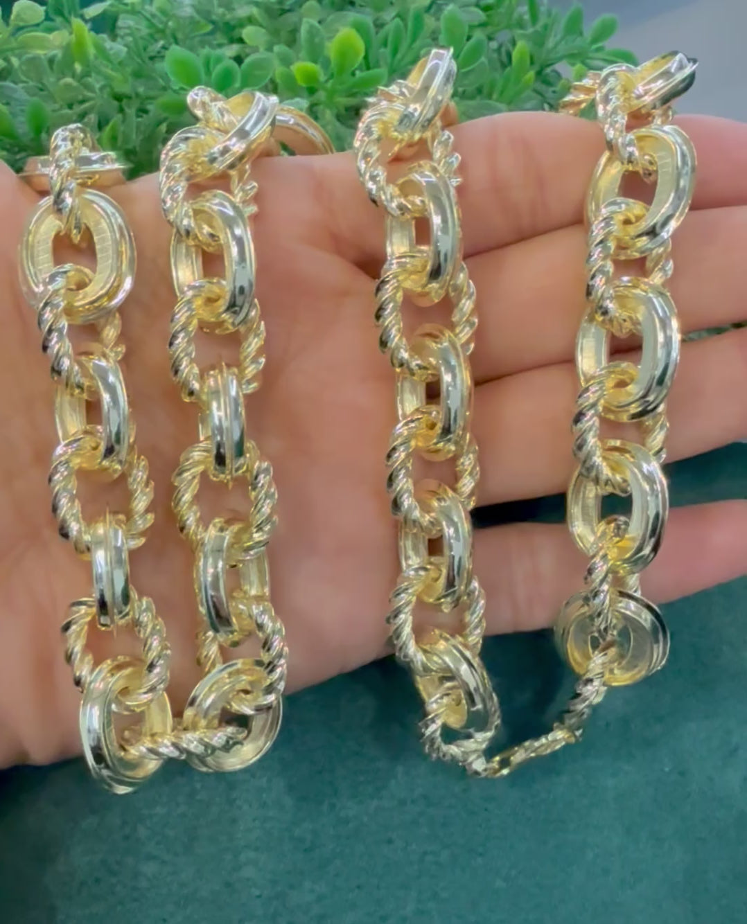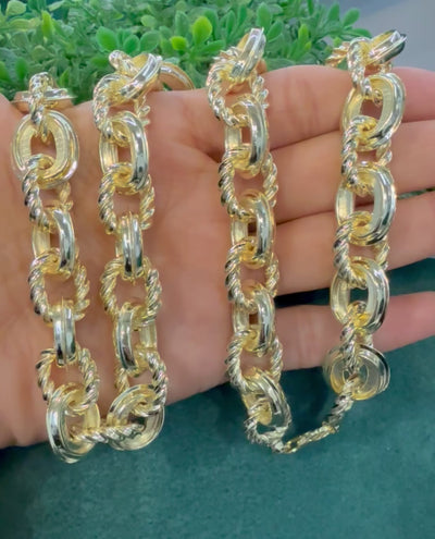 925 ITALIAN SOLID HEAVY STERLING SILVER HANDMADE MONEY CHAIN 15MM IN 14k GOLD PLATING