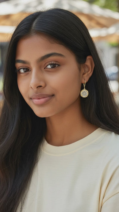 This beautiful atocha mini coin earrings is minted from silver bars that was found in the wreck of coast of Key West in Atocha Shipwreck and has 14kt gold bezel.
