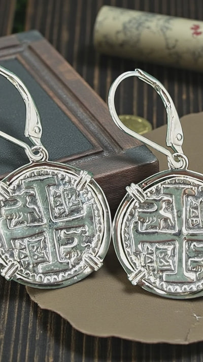This beautiful atocha coin earrings is minted from silver bars that was found in the wreck of coast of Key West in Atocha Shipwreck.